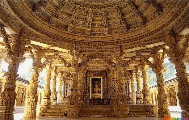 The Architecture of the temple boast detailed carvings, and decorative paintwork in the ante-chambers that surrounding the main shrine to the Parshvanath, the twenty-third tirthankara.